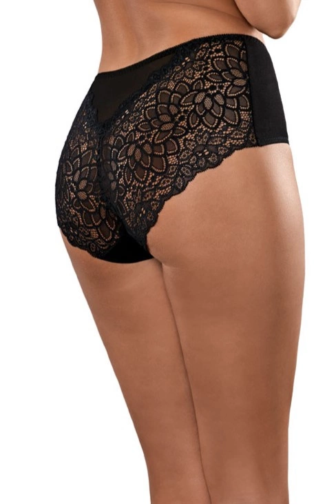 Na szczególną uwagę z pewnością zasługuje w tych modelach misterna koronka, z której uszyty został tył fig. Lekko falowany brzeg koronki nie zwija się i pięknie podkreśla pośladki. Dzięki wykończeniu majtek delikatną gumką, nie rolują się one na brzuchu.