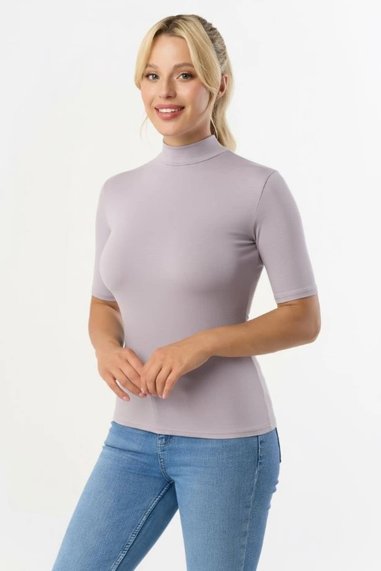 - Bluse mit halbem Rollkragen und kurzen Ärmeln aus weicher Viskose. Bequem, elegant und ideal für das tägliche Tragen.