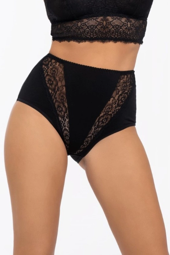 Piękne wysokie majtki z dodatkiem ozdobnych wstawek koronki z przodu. Wykonane z wysokiej jakości bawełny świetnie wchłaniającej wilgoć.