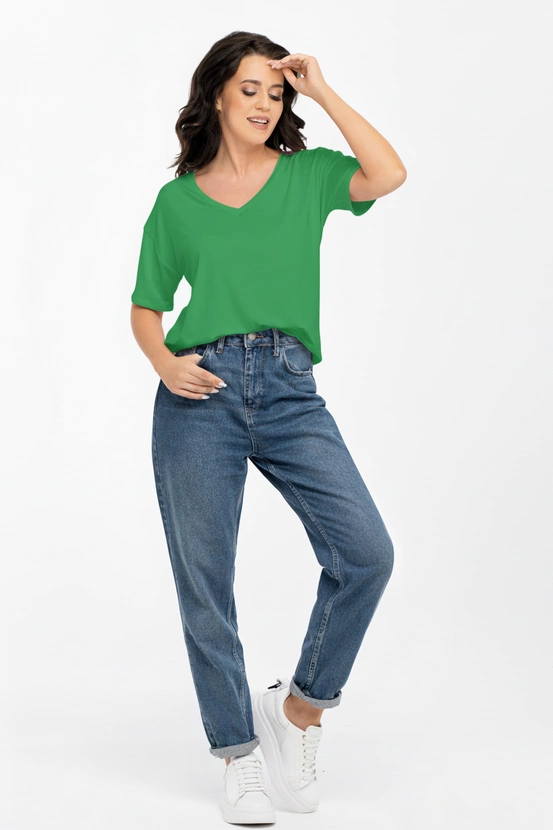 PATTY - locker sitzendes T-Shirt mit V-Ausschnitt in grün
