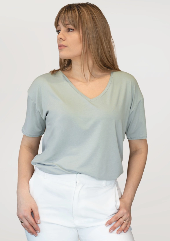 PATTY - lockeres T-Shirt mit V-Ausschnitt in der Farbe mint
