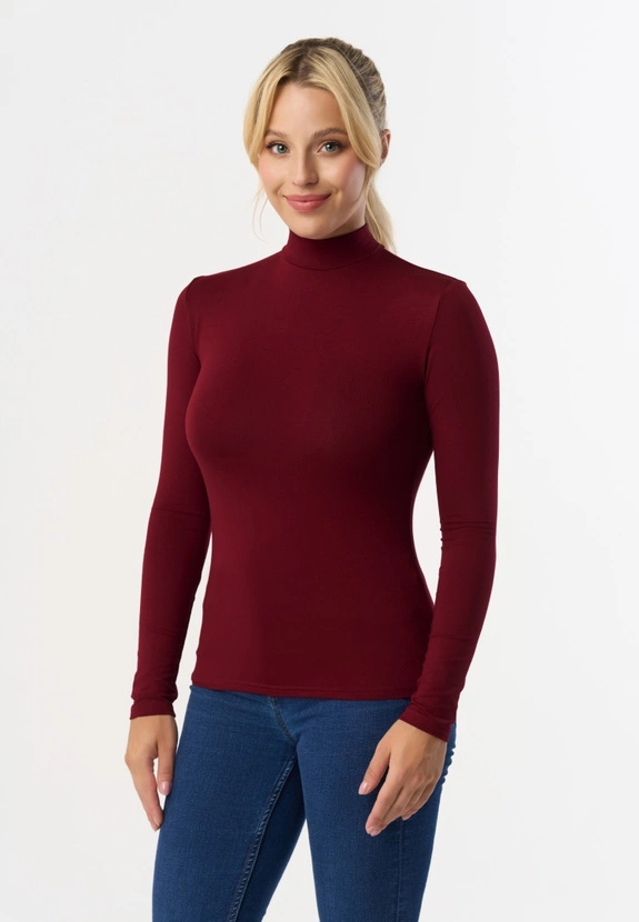 Die Bluse mit langen Ärmeln und einem dezenten halben Rollkragen ist die perfekte Wahl für Frauen, die Komfort und elegante Schlichtheit schätzen. Aus weichem, dehnbarem Strickstoff gefertigt, passt es sich perfekt der Silhouette an und bietet ganztägigen Komfort.