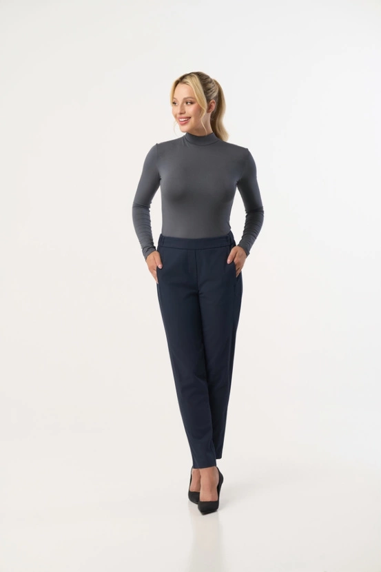 Die Bluse mit langen Ärmeln und einem dezenten halben Rollkragen ist die perfekte Wahl für Frauen, die Komfort und elegante Schlichtheit schätzen. Aus weichem, dehnbarem Strickstoff gefertigt, passt es sich perfekt der Silhouette an und bietet ganztägigen Komfort.