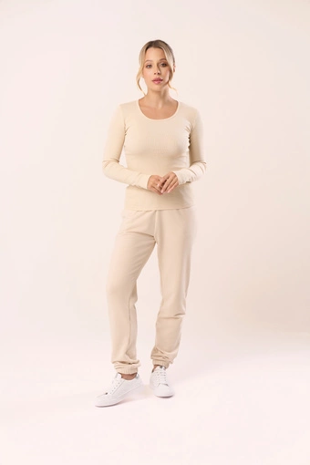 Prążkowane body damskie na ramiączkach TIA w kolorze beżowym