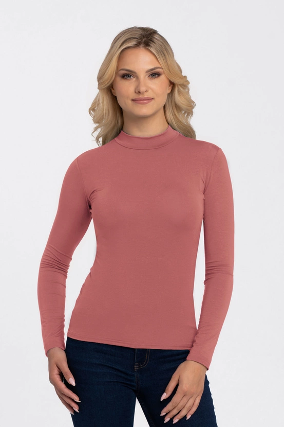 Blouse with long sleeves and a subtle half turtleneck is the perfect choice for women who appreciate comfort and elegant simplicity. Made of soft, stretchy knit fabric, it fits perfectly to the figure, providing comfort all day long.