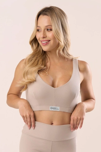 Biustonosz z prążkowanej bawełny w kolorze soft taupe
