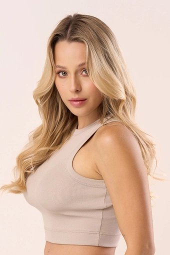 Top z prążkowanej bawełny w kolorze soft taupe