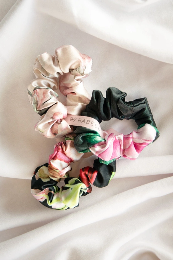 Wzbogać swoją kolekcję akcesoriów do włosów dzięki unikalnemu zestawowi trzech satynowych gumek z motywem kwiatów. Każda z gumek zachwyca delikatnym materiałem i pięknym, kwiecistym wzorem, który doda Twoim fryzurom lekkości i romantycznego charakteru.