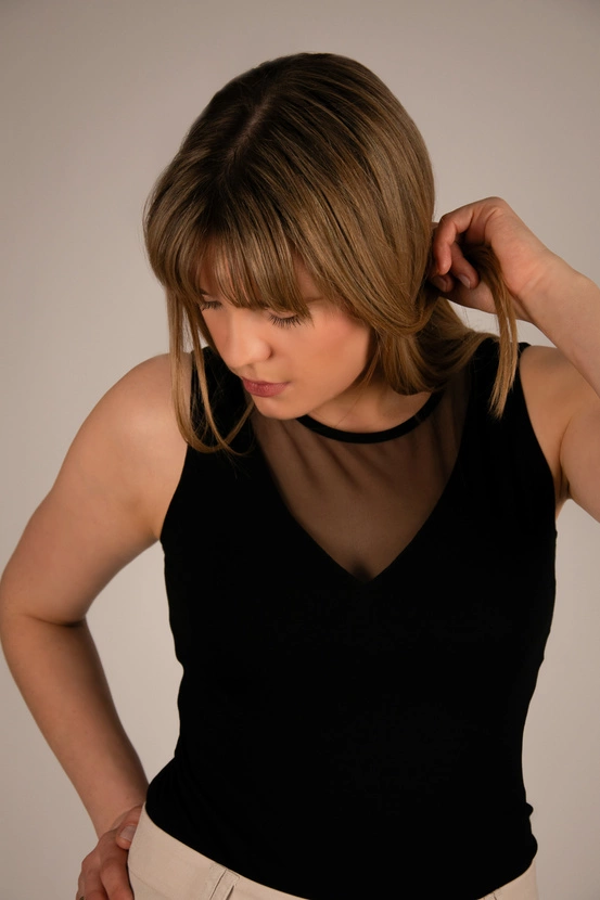 Model MARIAH w kolorze czarnym to doskonały wybór dla kobiet, które cenią elegancję w połączeniu z wygodą. Klasyczny top bez rękawów został urozmaicony subtelnym dekoltem z tiulowym wykończeniem, co nadaje całości szyku i ponadczasowego charakteru. Bluzka świetnie sprawdzi się zarówno w biurze, podczas spotkań biznesowych, jak i na wieczorne wyjście.