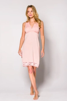 SIMONE - koszula nocna z koronkowym dekoltem w kolorze brzoskwiniowym
